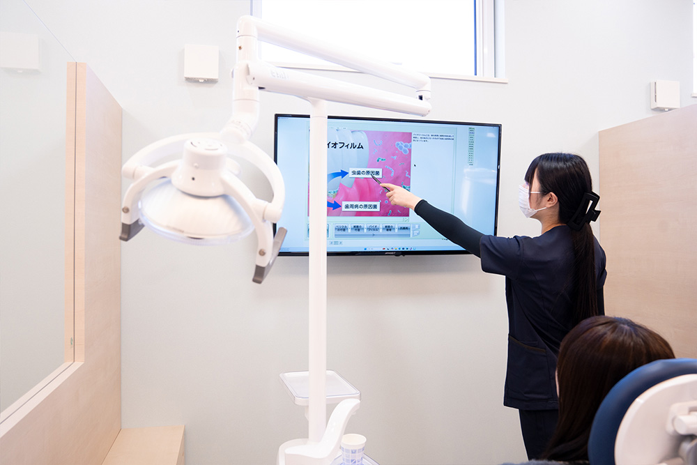 治療を終えた後が重要です。再度、⾍歯や歯周病にならないように、定期的なメインテナンスでのご来院をお勧めしております。歯科衛⽣⼠による処置で口腔内を清潔な状態にし、ブラッシング指導やホームケアでご自⾝の歯を守っていきましょう。